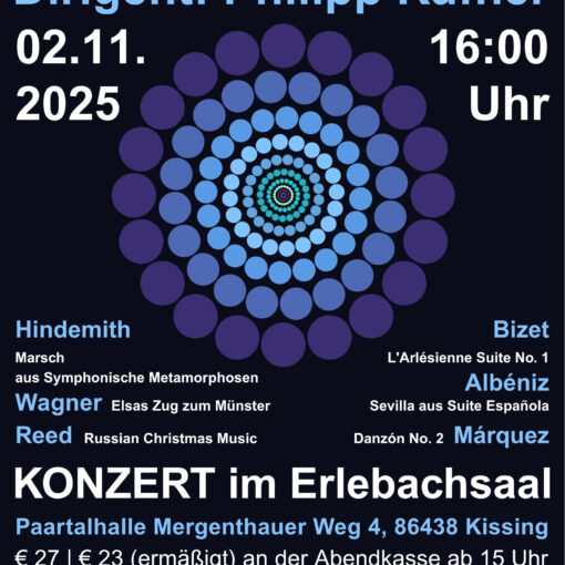 findet am Sonntag, 25. Oktober 2020 um 16:00 Uhr im Forum am Hofgarten in der Jahnstraße 2, 89312 Günzburg statt. Auf dem Programm stehen Werke, die dieses Motto inhaltlich und thematisch aufgreifen. Eröffnet wird es mit „Nabucco“ von Guiseppe Verdi, anlässlich 250 Jahren Beethoven folgt von diesem der „Yorkscher Marsch“, der von Paul Hindemith in dessen „Geschwindmarsch“ aufgegriffen und paraphiert wird. Den Abschluss vor der Pause bilden die „Polowetzer Tänze“ von Alexander Borodin. Der zweite Teil startet mit dem „Adagio“ von Joaquin Rodrigo und widmet sich mit der „Karelia-Suite“ von Jean Sibelius der Befreiung Finnlands, an die mit „Liberty Bell“ von John Philip Sousa eine Widmung an die Amerikanische Unabhängigkeitserklärung das Konzert beschließt.
